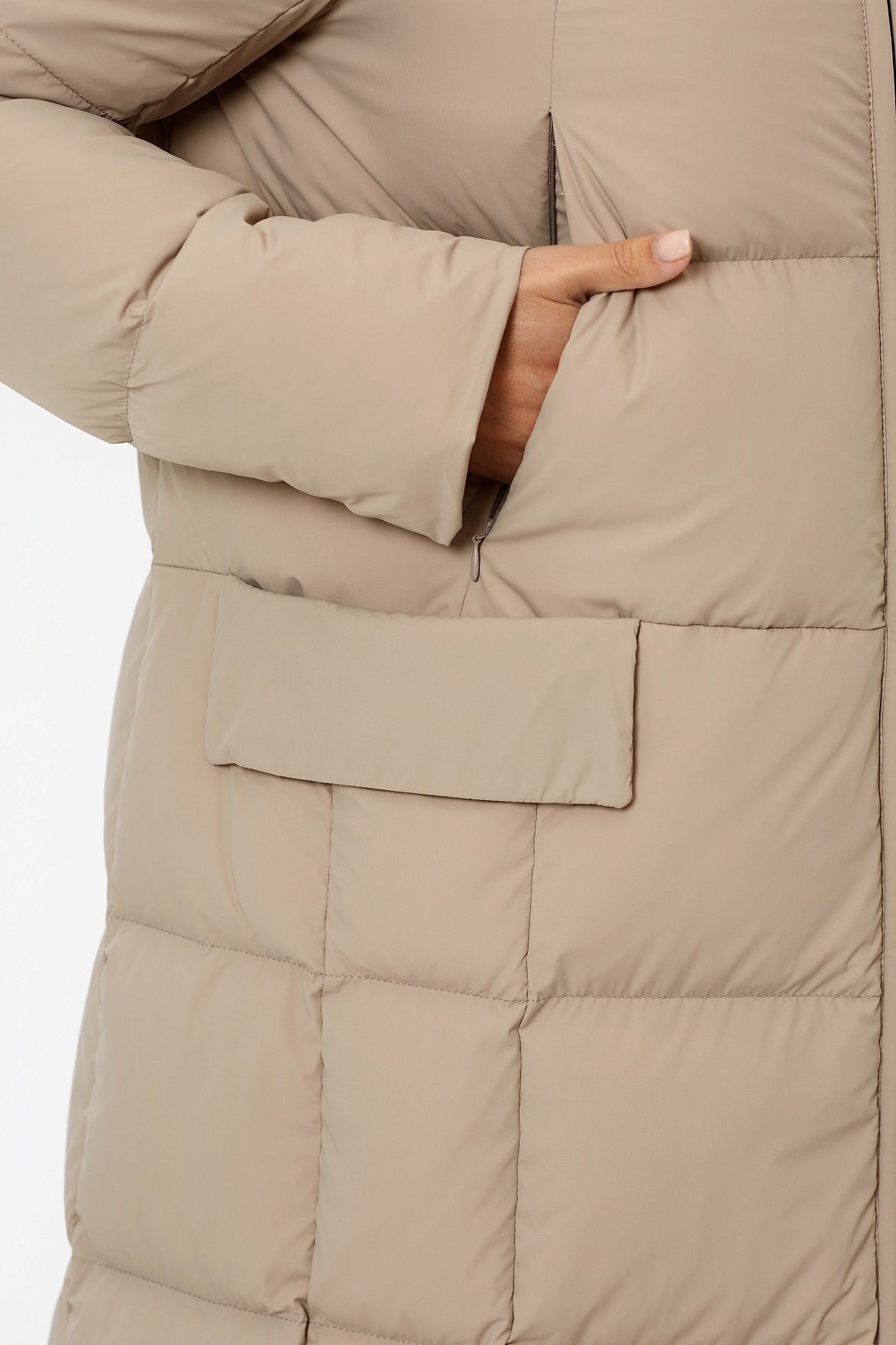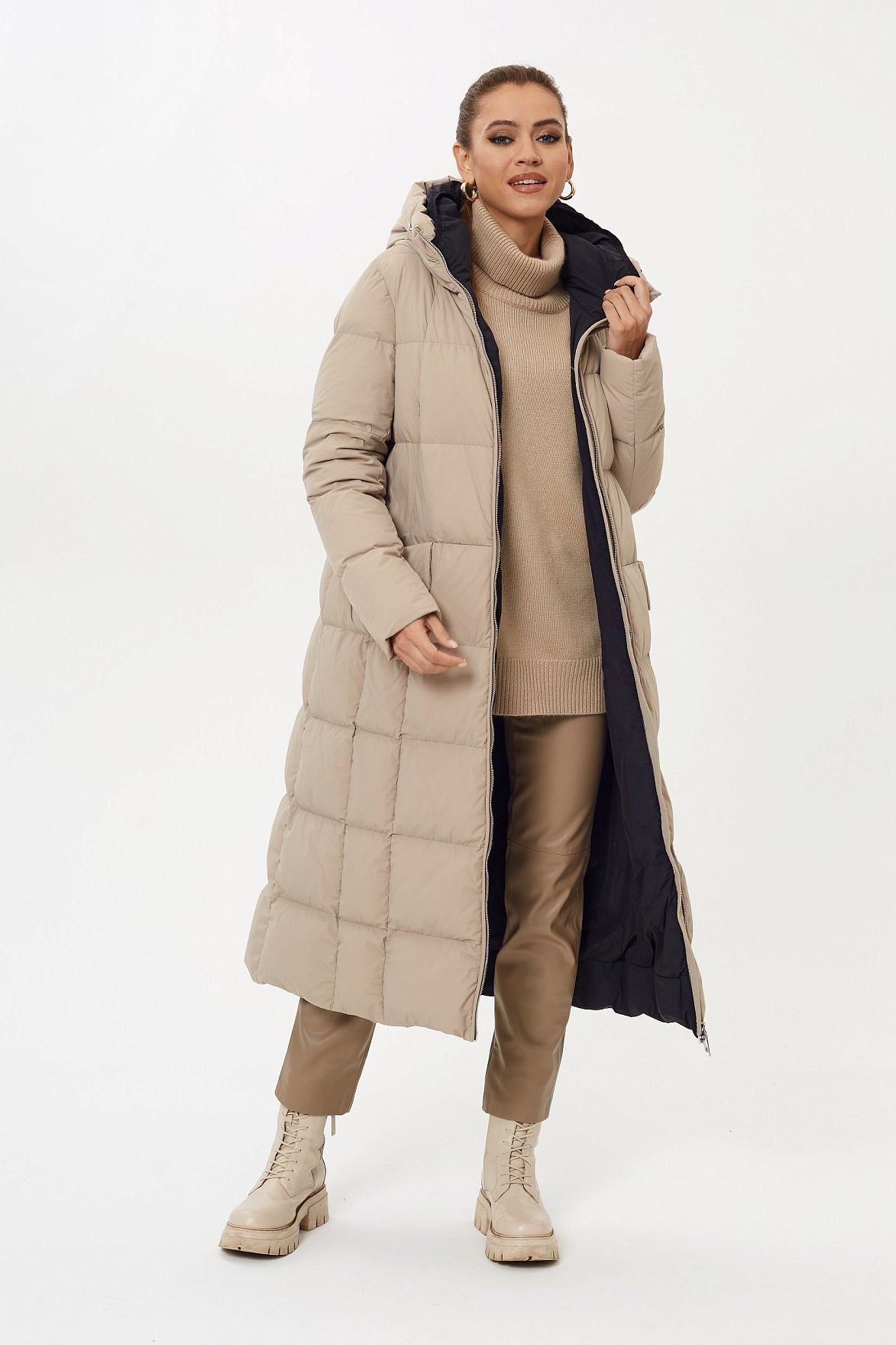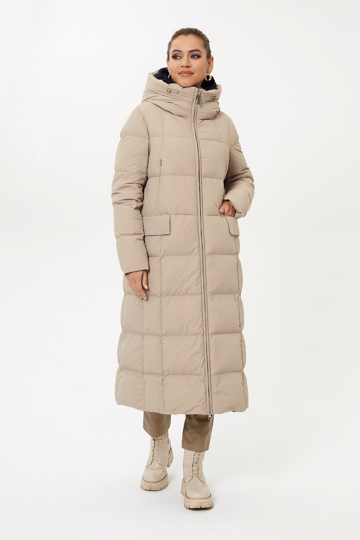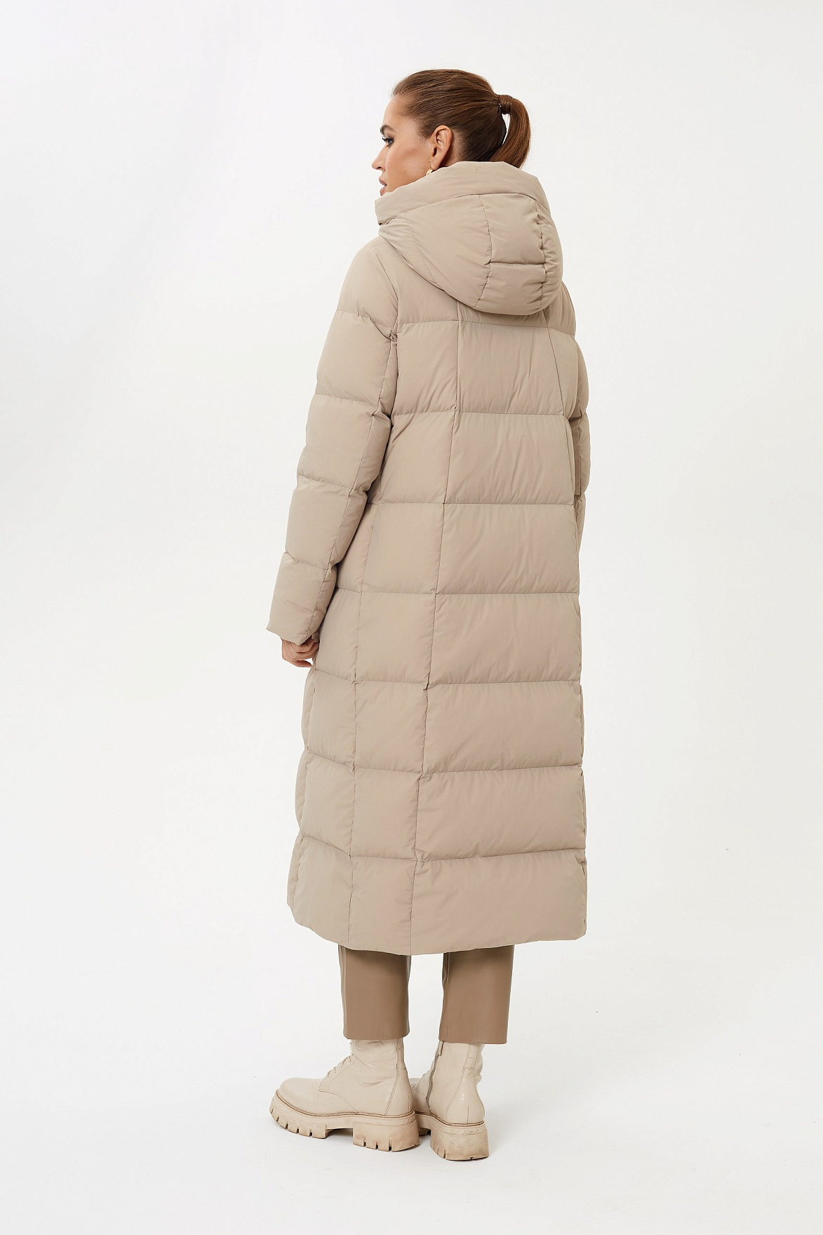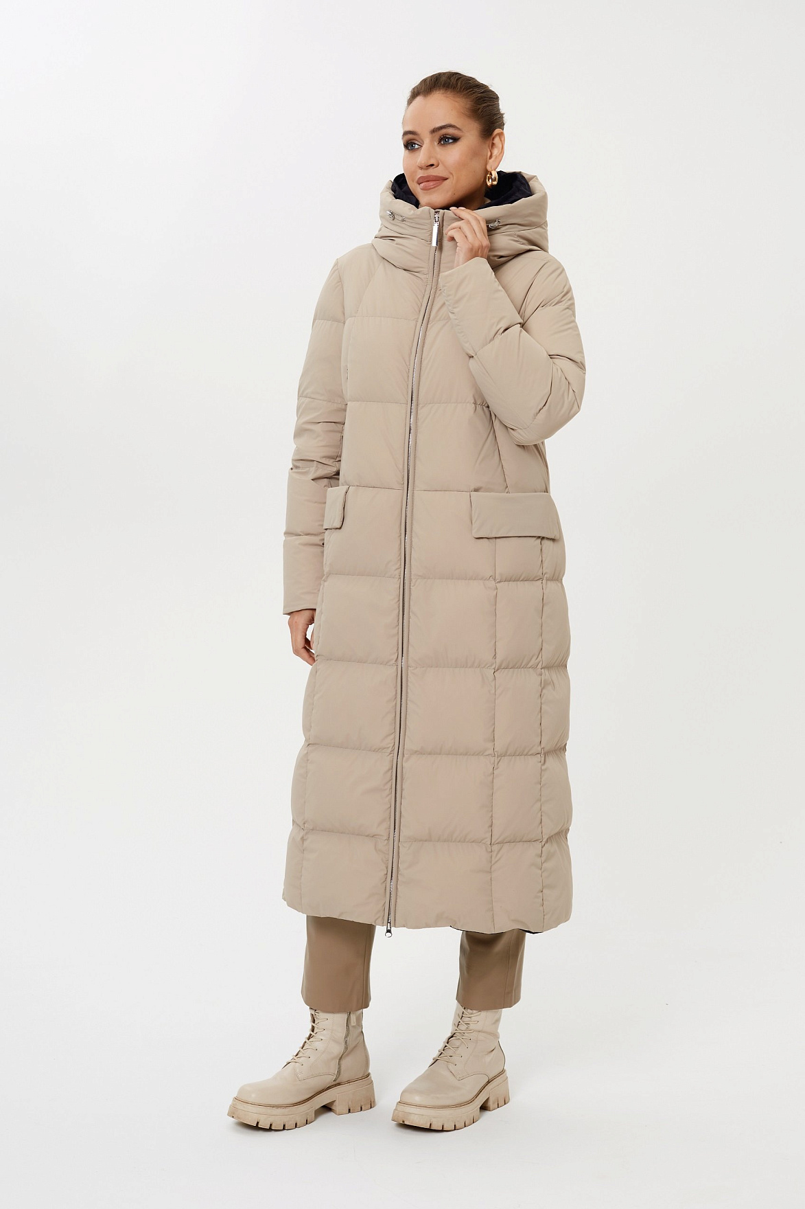 Актуальный фасон и длина ниже колена позволяет носить пальто как в условиях города, активного темпа жизни, так и на расслабленные прогулки по парку зимой. А еще – наполнитель состоит из натурального пуха и пера в соотношении 90/10. Основа получилась теплой, уютной и практически невесомой.