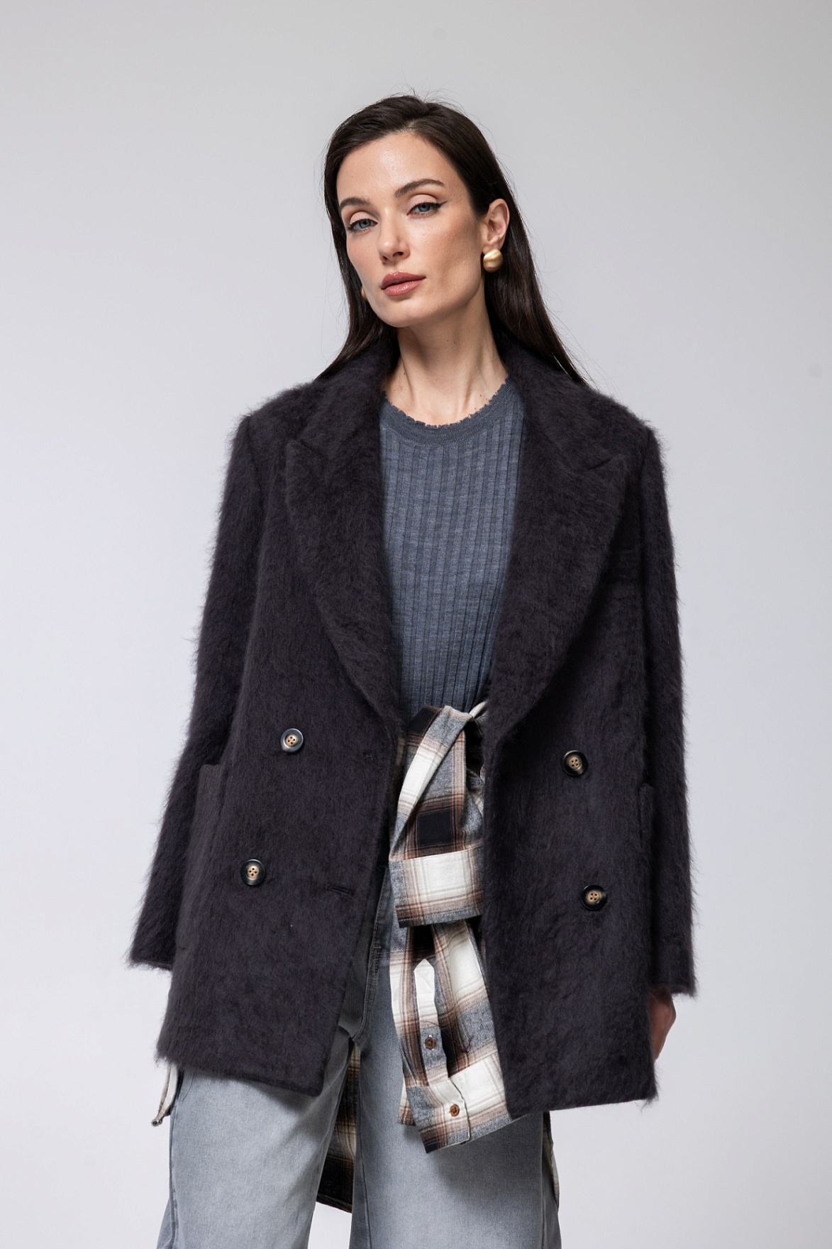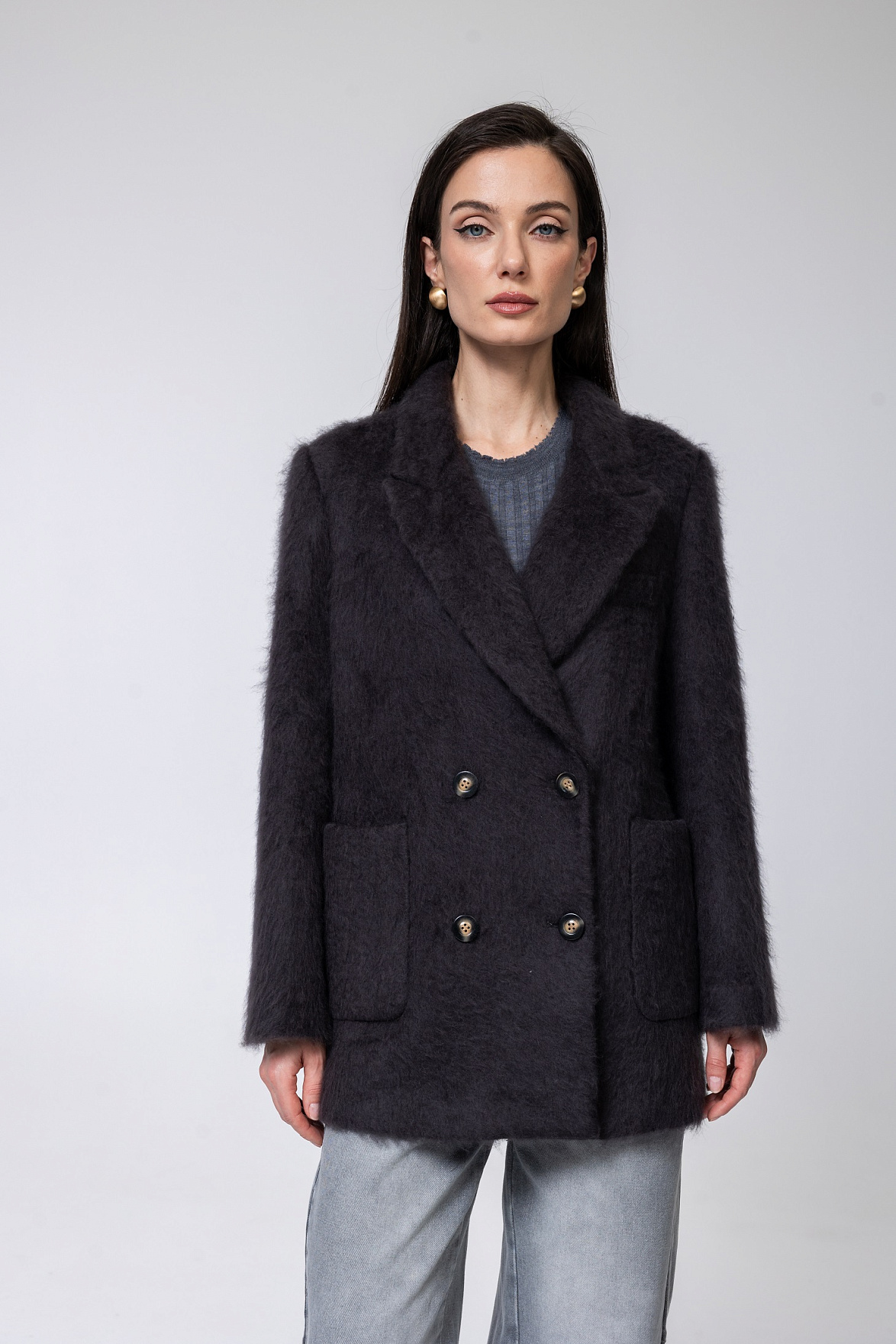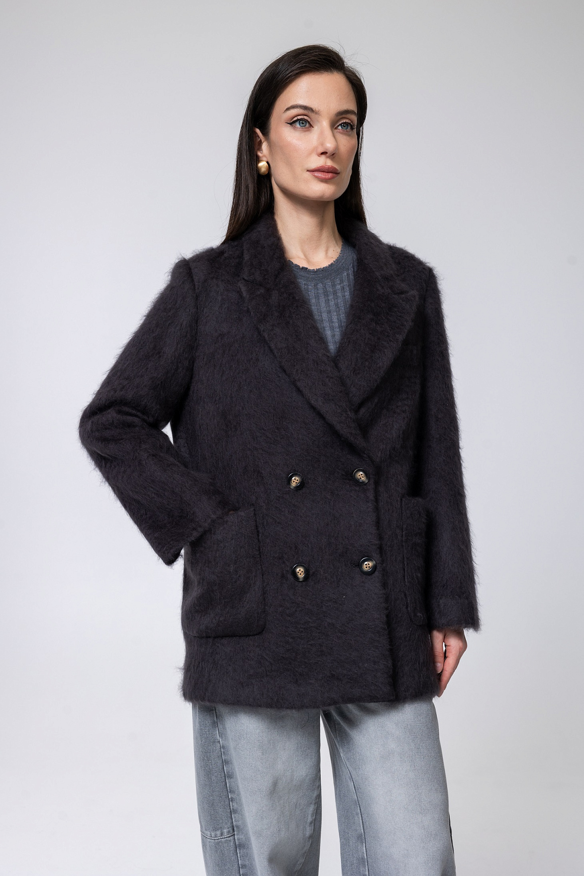 22102.ACW.0013S пальто женское из шерсти и шелка GRAY