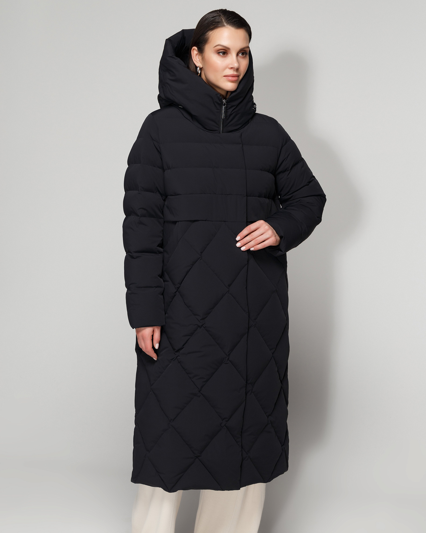 Тонкая внешняя ткань с матовым финишем и эластаном в составе защитит от осеннего ветра, быстро высохнет после снега и дождя, а наполнитель из натурального пуха и пера согреет в ненастье, не утяжеляя модель. Уютный капюшон с воротником-стойкой обеспечат дополнительный комфорт.