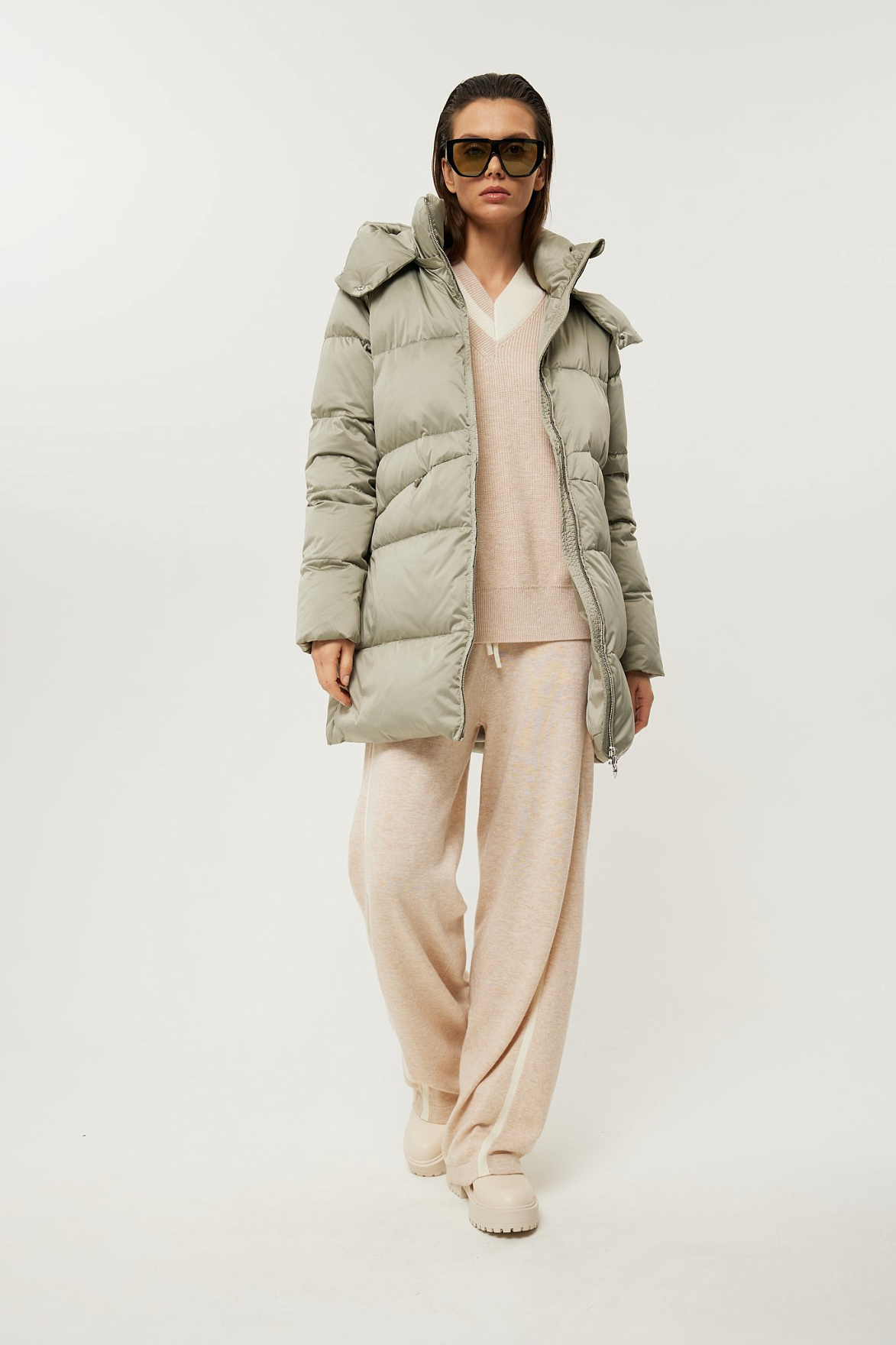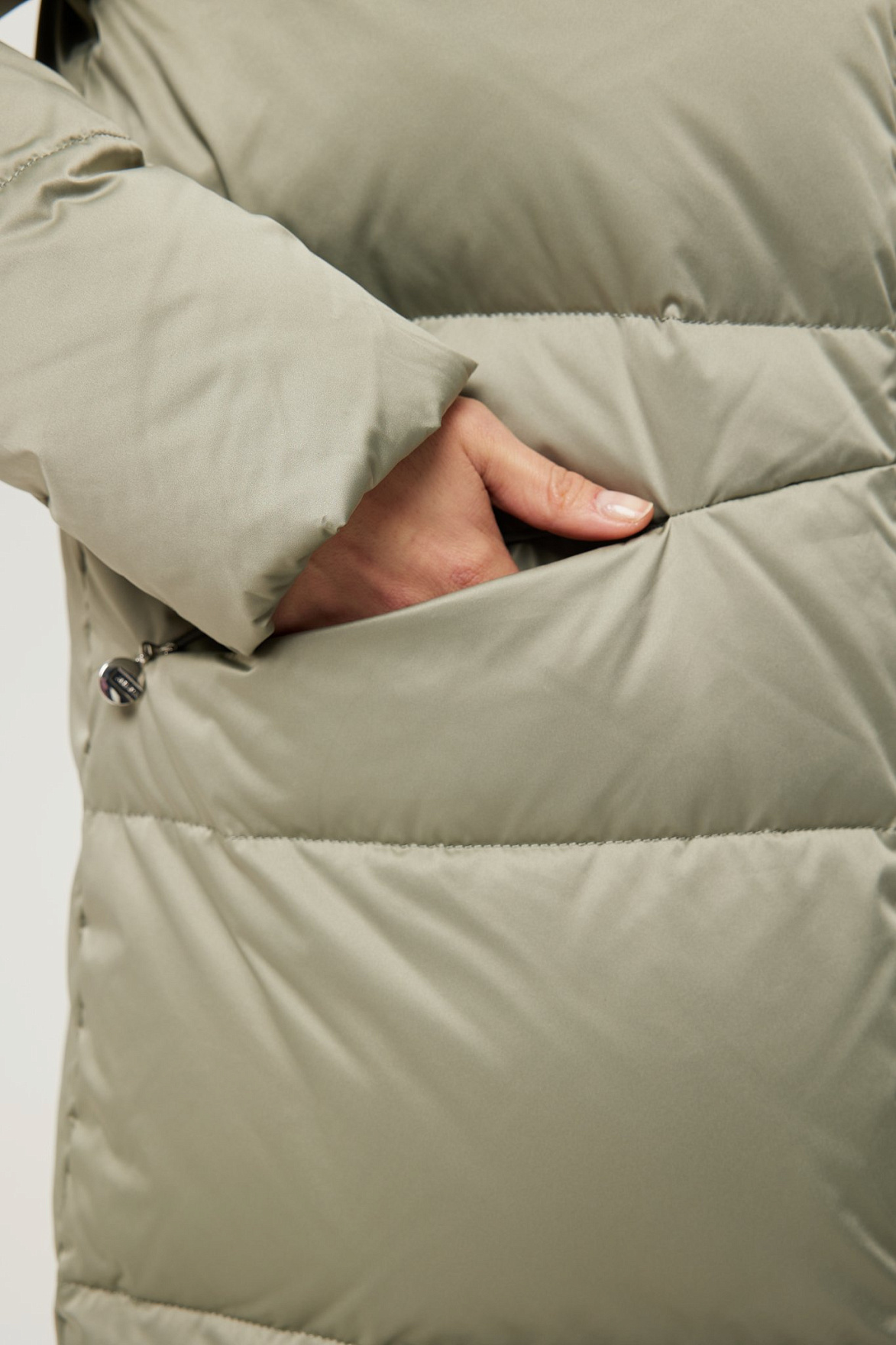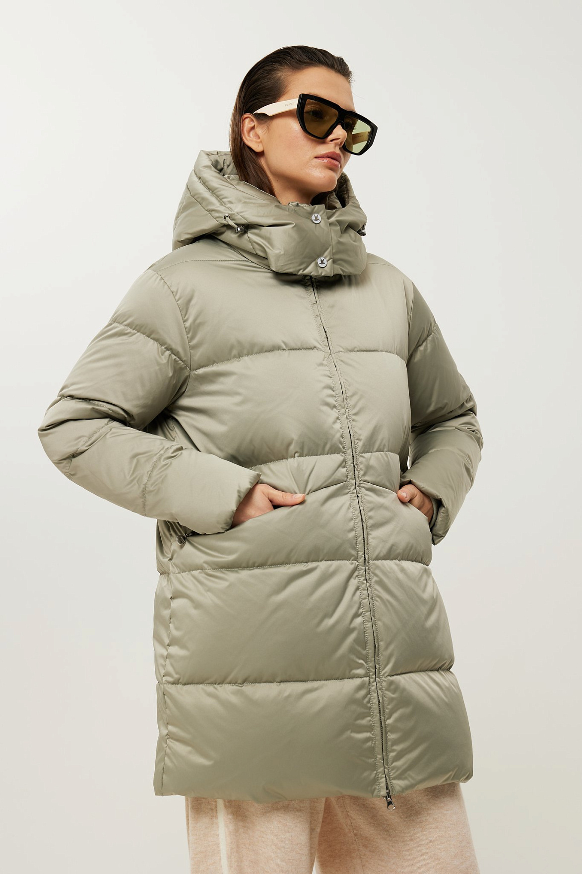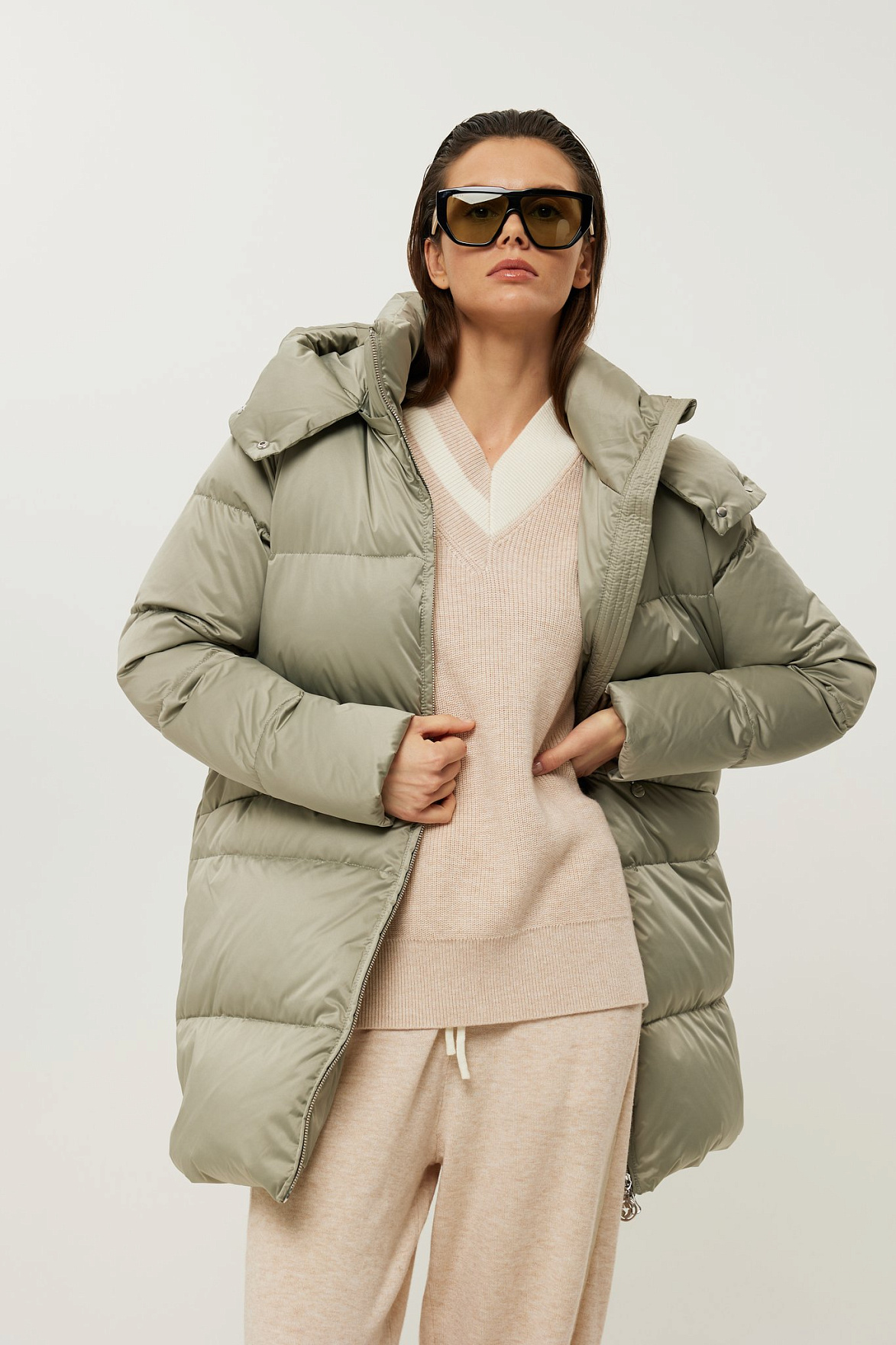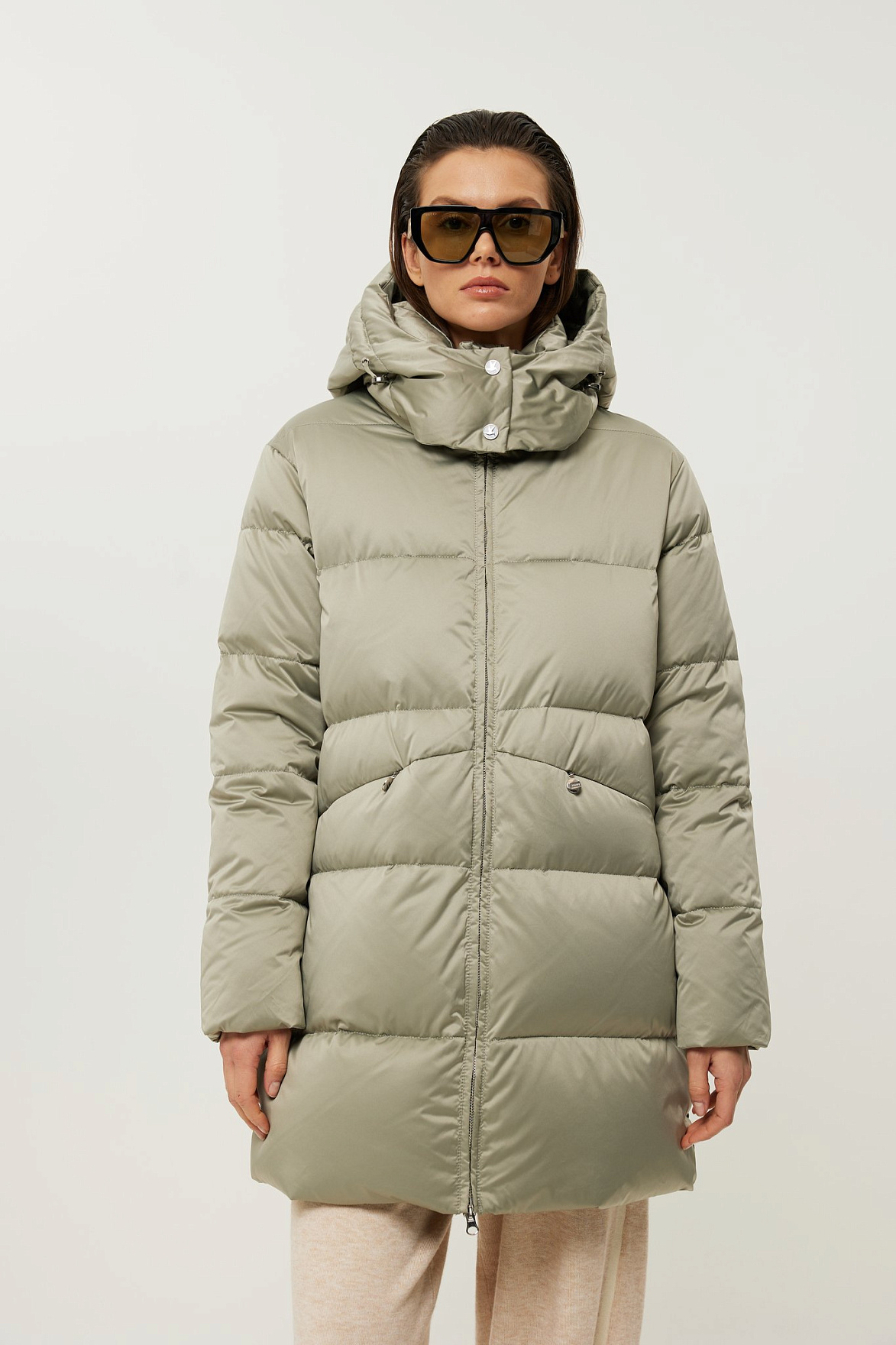 Объемный съемный капюшон на металлической молнии, утеплитель из натурального пуха и пера в соотношении 90/10, внешний слой из глянцевой таффеты, которая практически не мнется, и ветрозащитные планка, манжеты – все эти особенности делают модель Albana мастхэвом вашего зимнего гардероба.