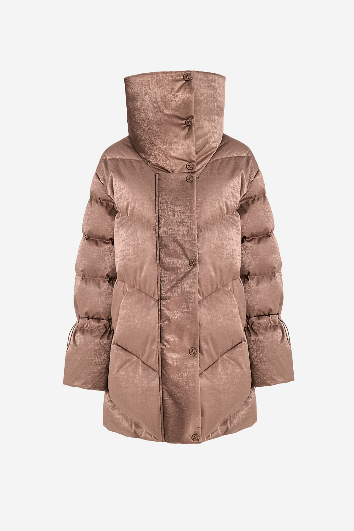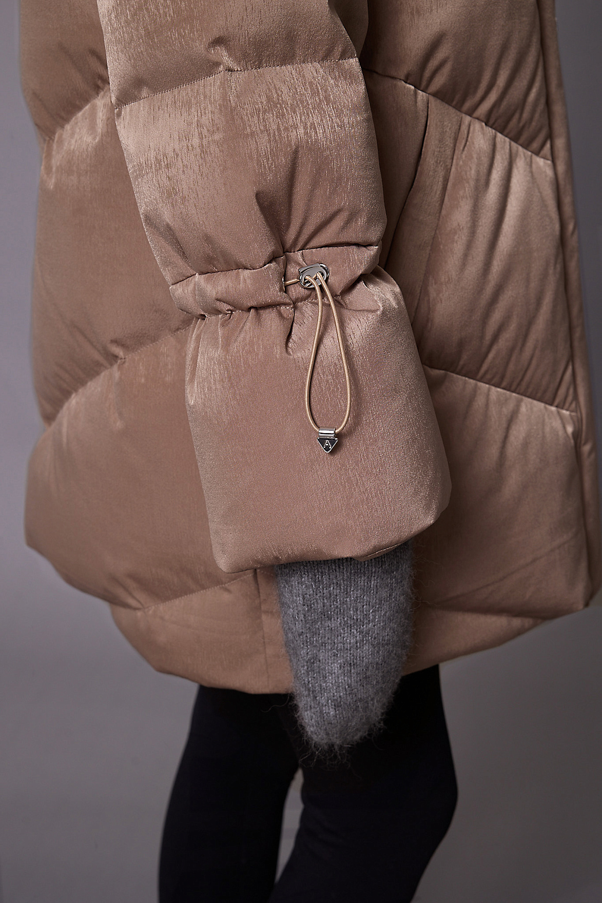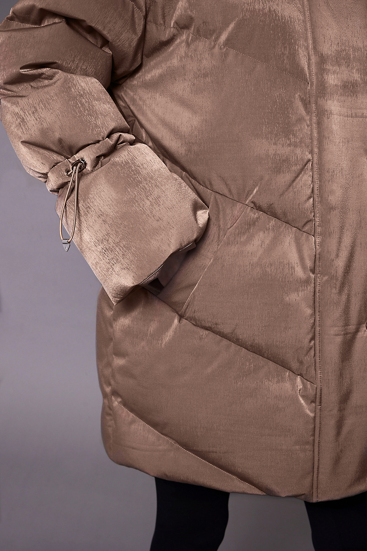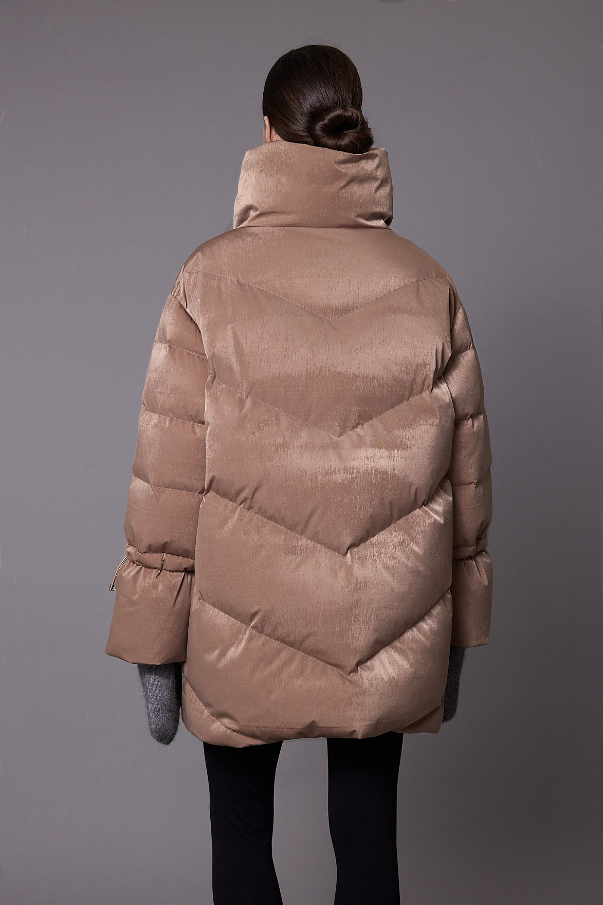 Наполнитель из натурального пуха и пера сохраняет внутренний комфорт и легкость, а продуманная конструкция препятствует потере тепла. Особого внимания заслуживают манжеты: в рукава встроены эластичные резинки, которые создают дополнительный барьер от ветра и гармонично завершают образ.