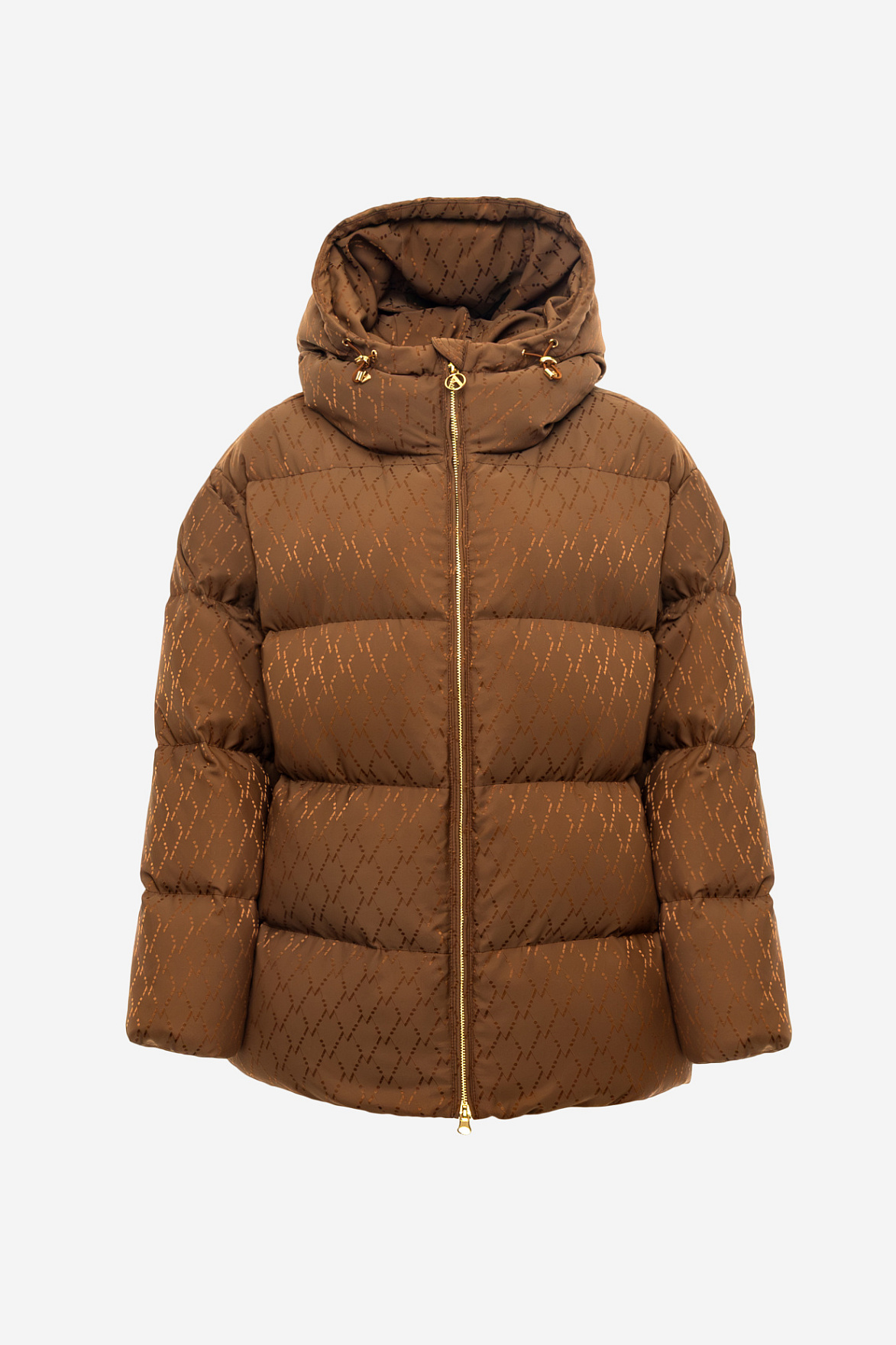 Несъемный капюшон, переходящий в воротник, создает мягкую линию и надежно защищает от ветра. А металлическая молния и прорезные карманы на молнии подчеркивают современный характер модели. Теплый коричневый оттенок усиливает фактуру жаккарда, делая образ еще более выразительным.