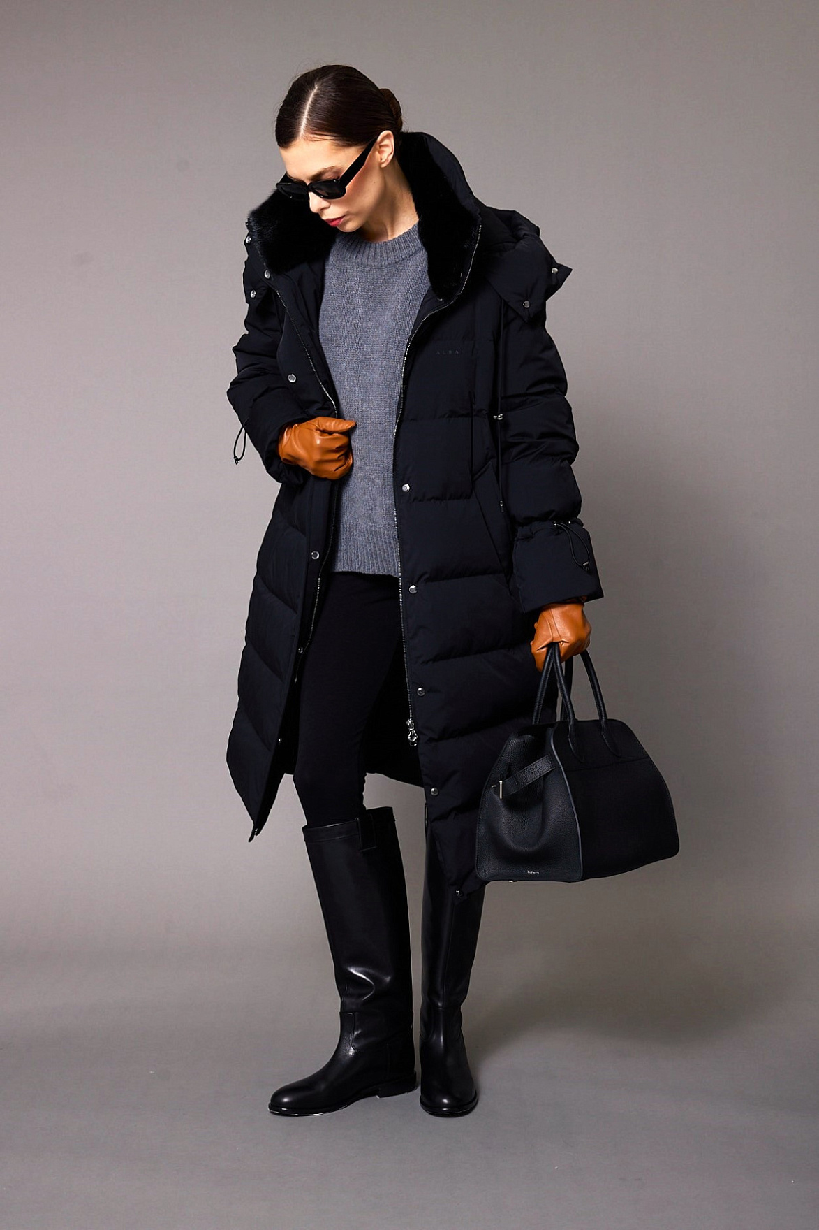Наполнение из пуха и пера делает модель легкой, но при этом надежно удерживающей тепло. Фурнитура тоже продумана до мелочей: двойная молния и кнопки встроены в образ так деликатно, что кажутся естественным продолжением линии пальто, а прорезные карманы на молнии подчеркивают чистоту линий. Съемный капюшон дополняет образ практичной деталью, сохраняя эстетику.