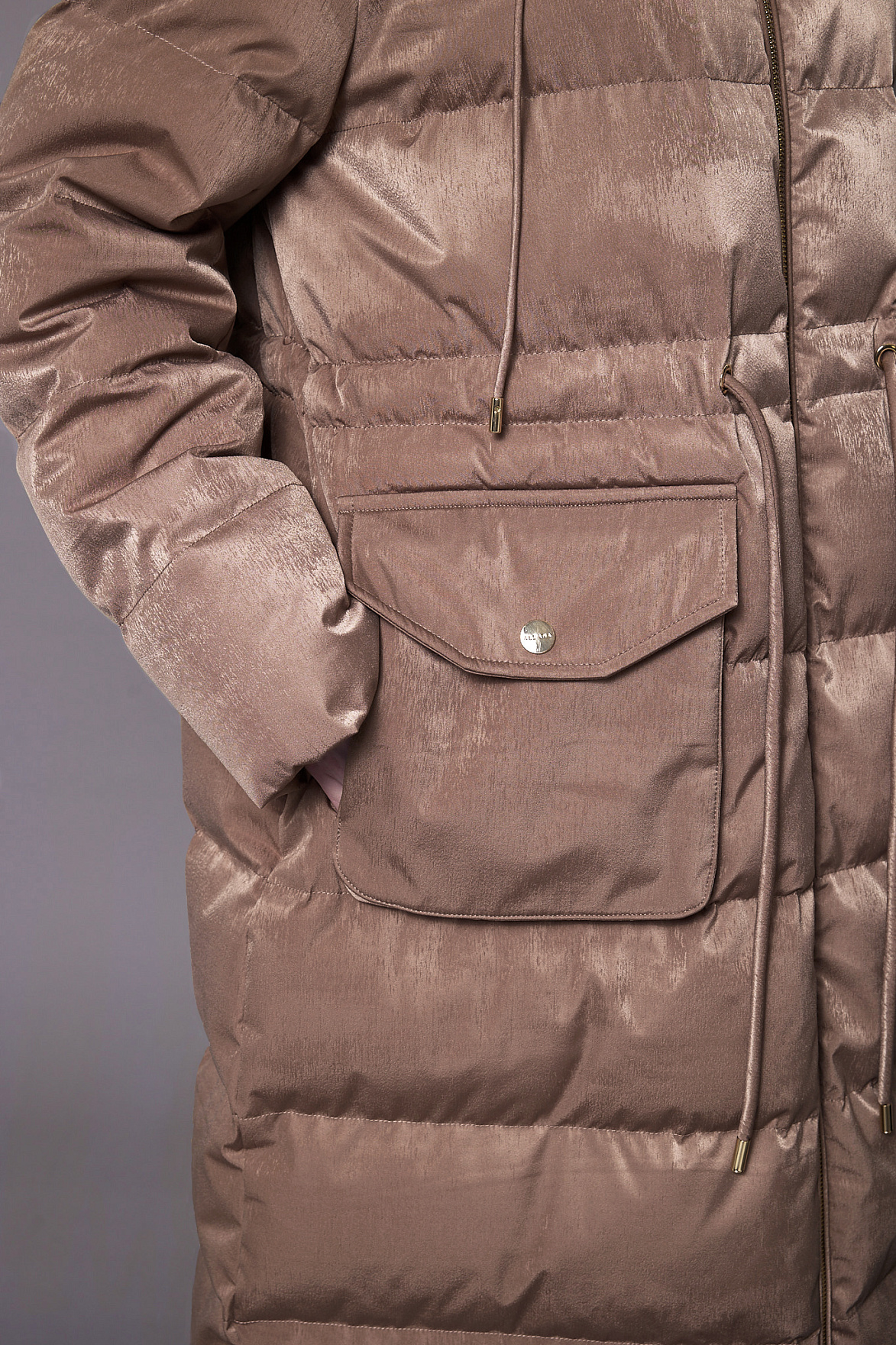 Внутри — утеплитель из пуха и пера. Благодаря особой технологии производства пух распределяется максимально равномерно: тепло сохраняется дольше, пальто не теряет форму и остается легким. Такая система обеспечивает стабильный микроклимат, исключает перегрев и позволяет чувствовать себя комфортно даже в условиях резких перепадов температур.