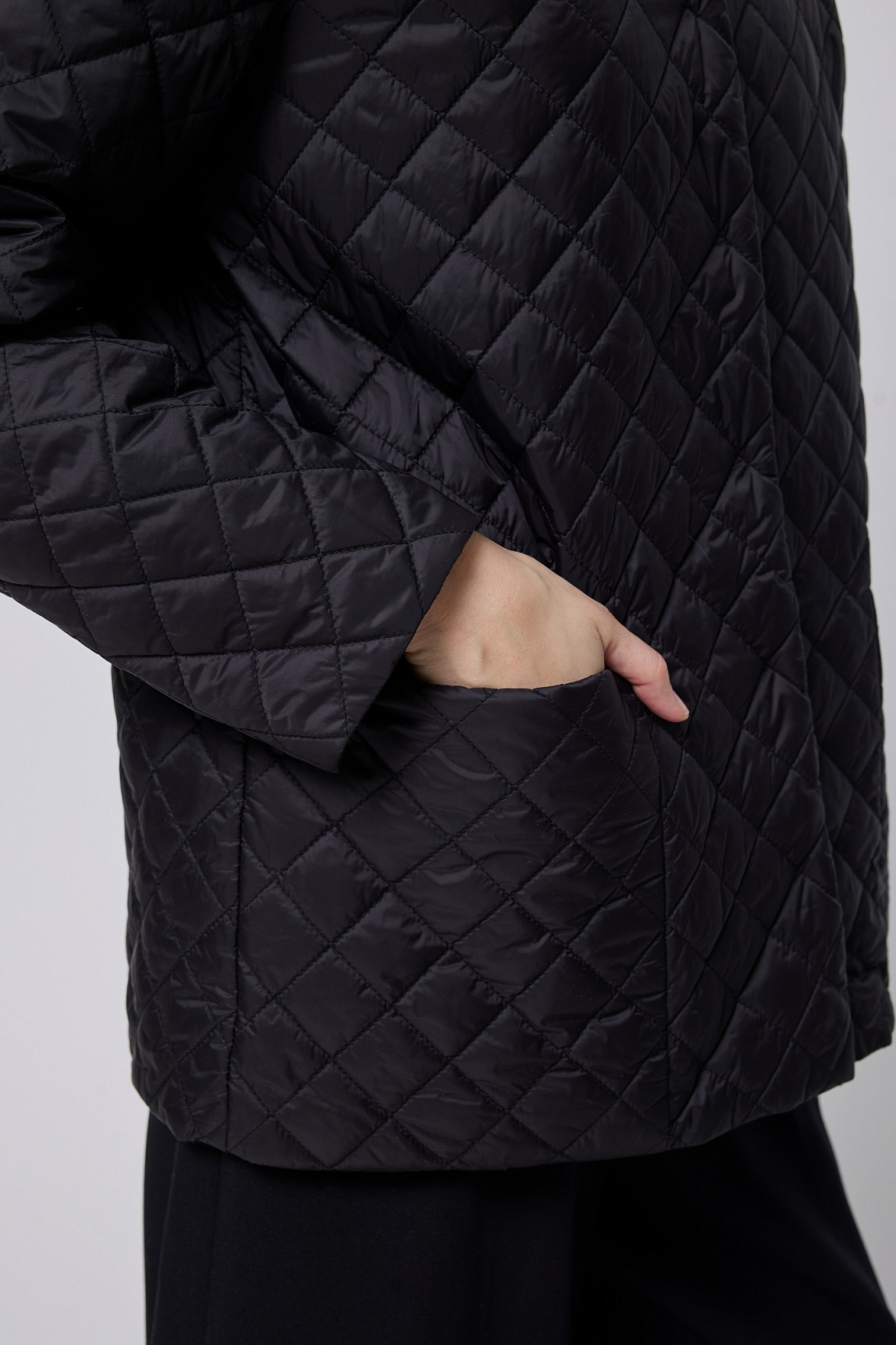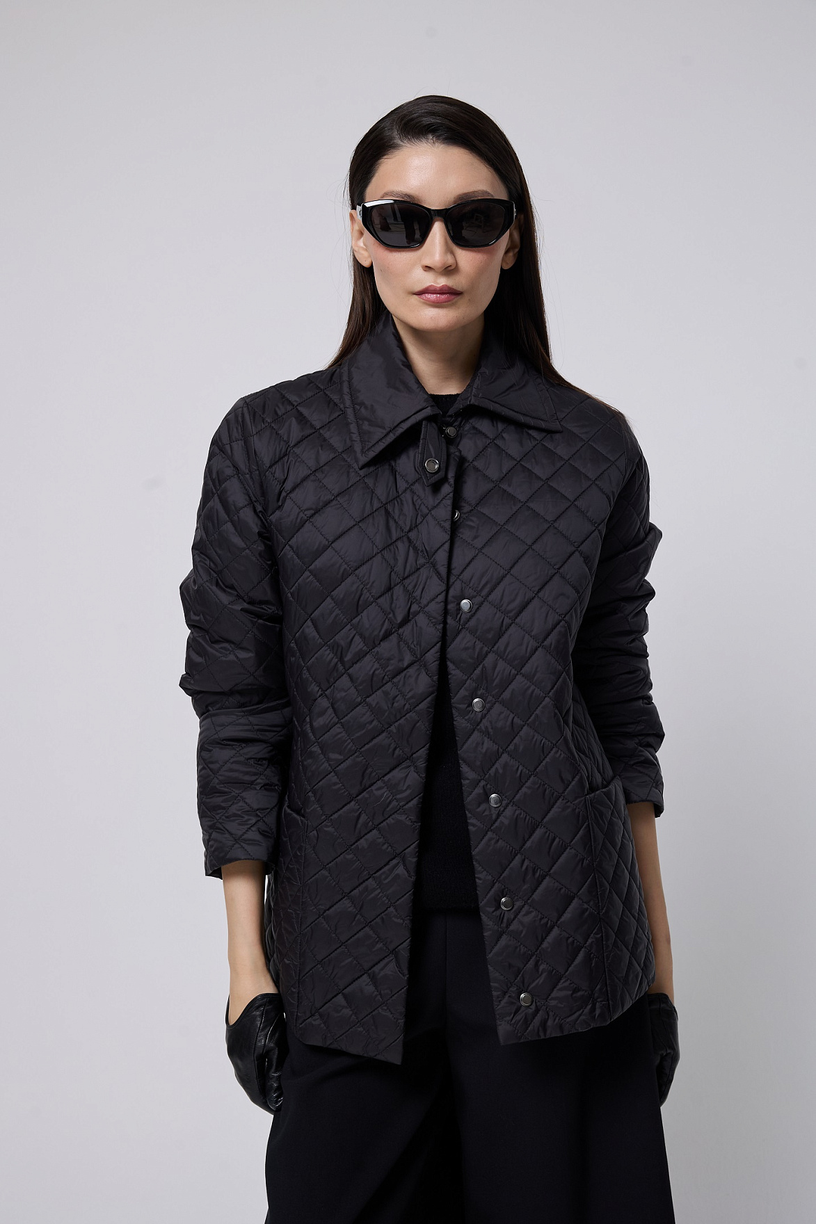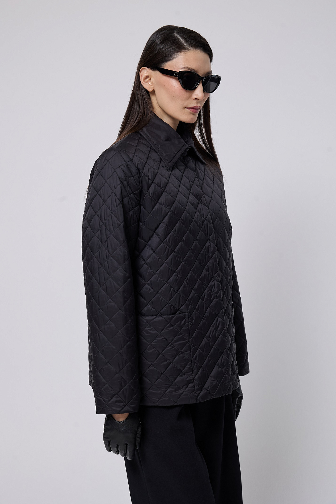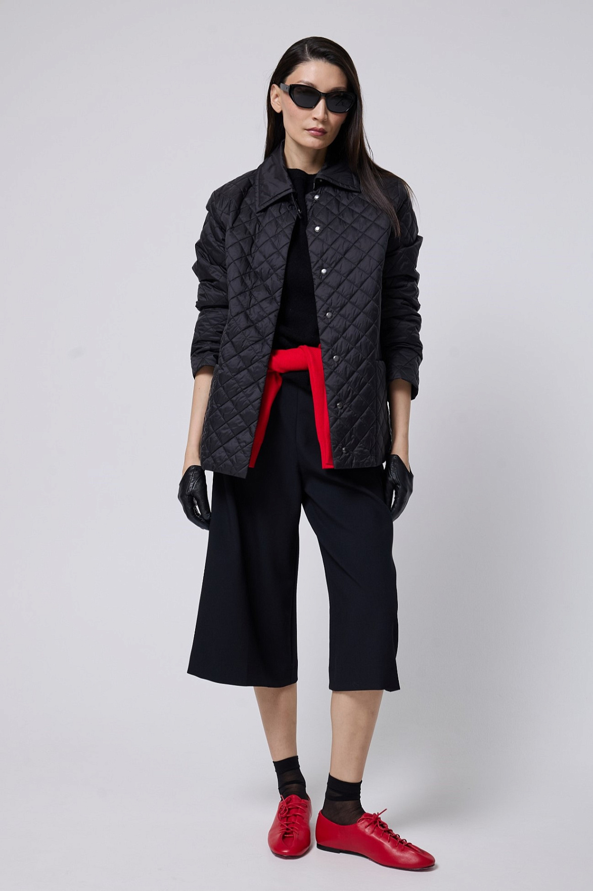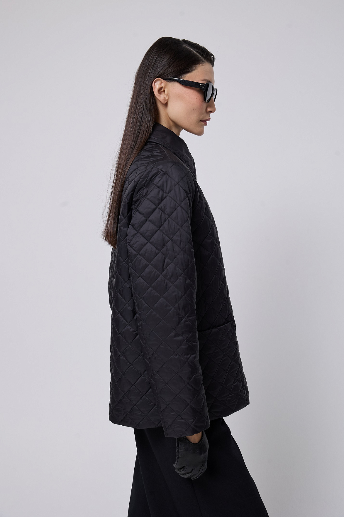 Чёрный оттенок делает модель особенно уверенной и универсальной. Он подчёркивает форму, дружит с молочным, графитом, карамелью и серым и позволяет быстро строить спокойные базовые комплекты. В таком цвете куртка выглядит особенно взрослой. Это именно тот чёрный, который делает образ чище, а не тяжелее. Именно поэтому она одинаково уверенно чувствует себя и в рабочем расписании, и в более свободных выходных сочетаниях.