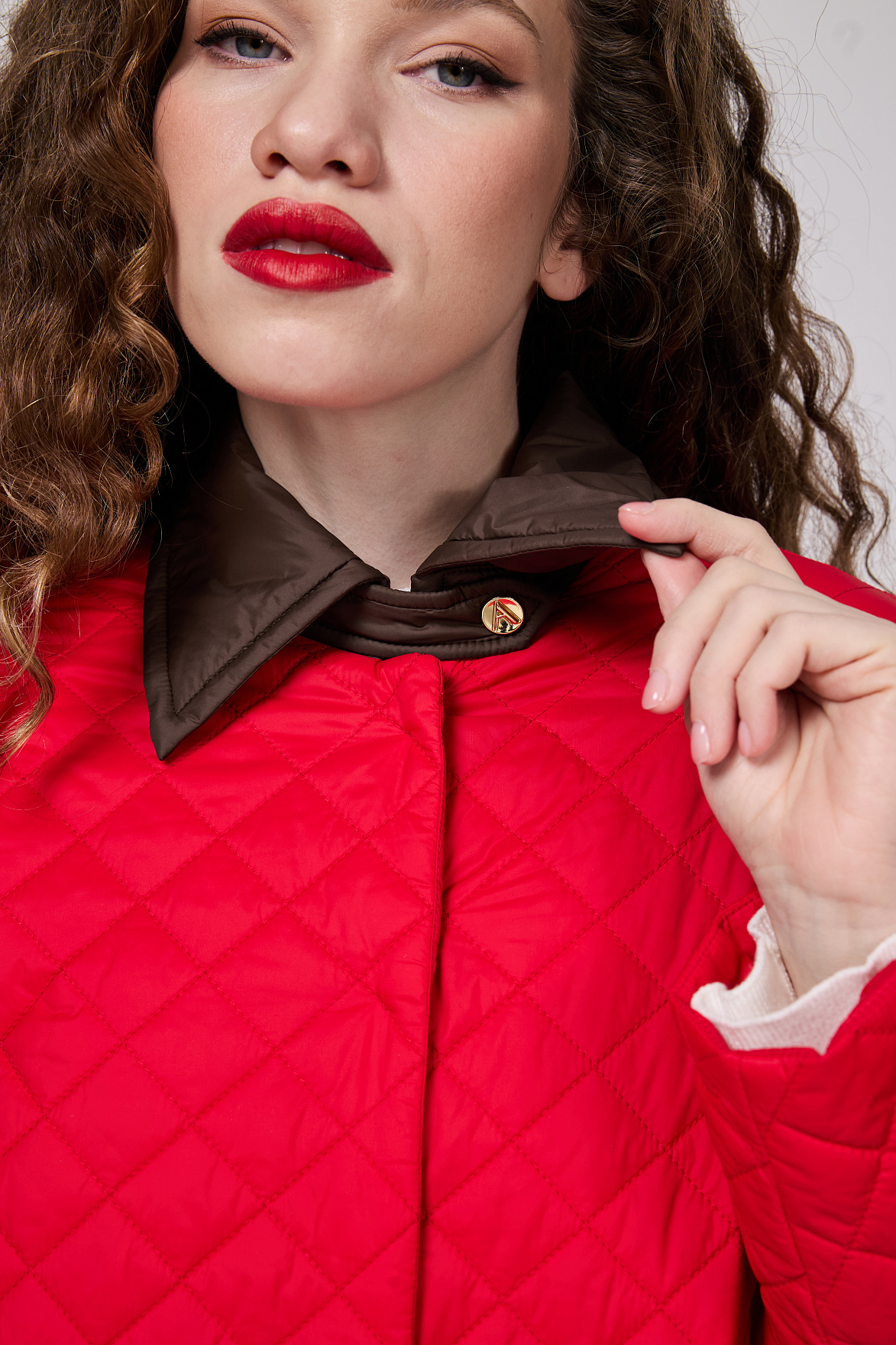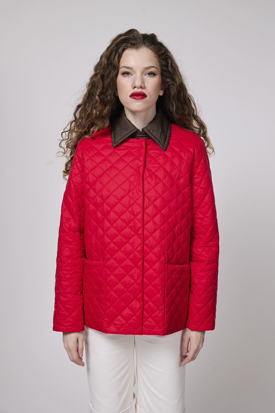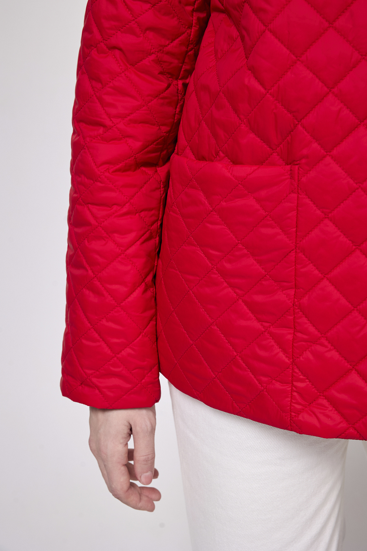 Такую куртку мы советуем носить с прямыми брюками, тонким трикотажем и лоферами — в этом сочетании она особенно хорошо заменяет жакет. С денимом, ботильонами и мягким шарфом образ становится свободнее, но всё равно остаётся собранным. Если нужен акцентный городской комплект, оставьте рядом простые формы и спокойные материалы. Красный здесь уже делает достаточно, и куртка сама держит внимание без дополнительного усилия.