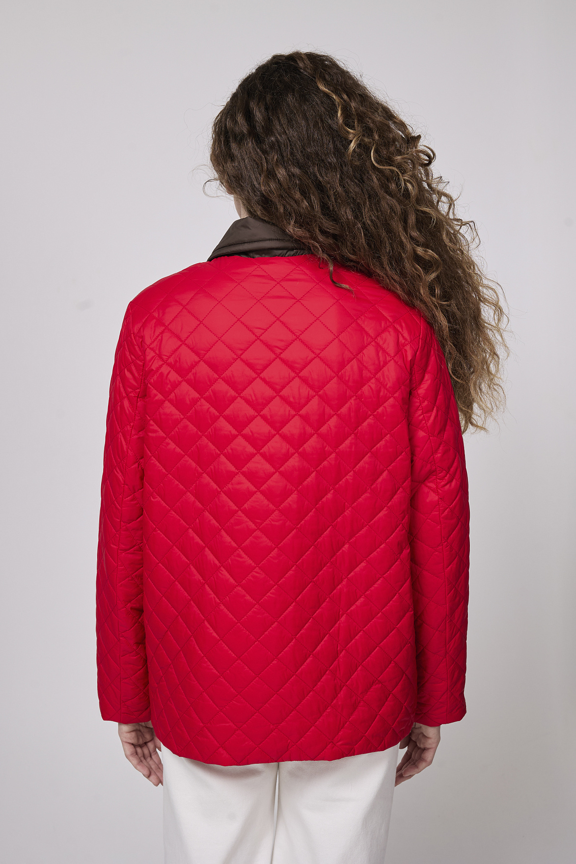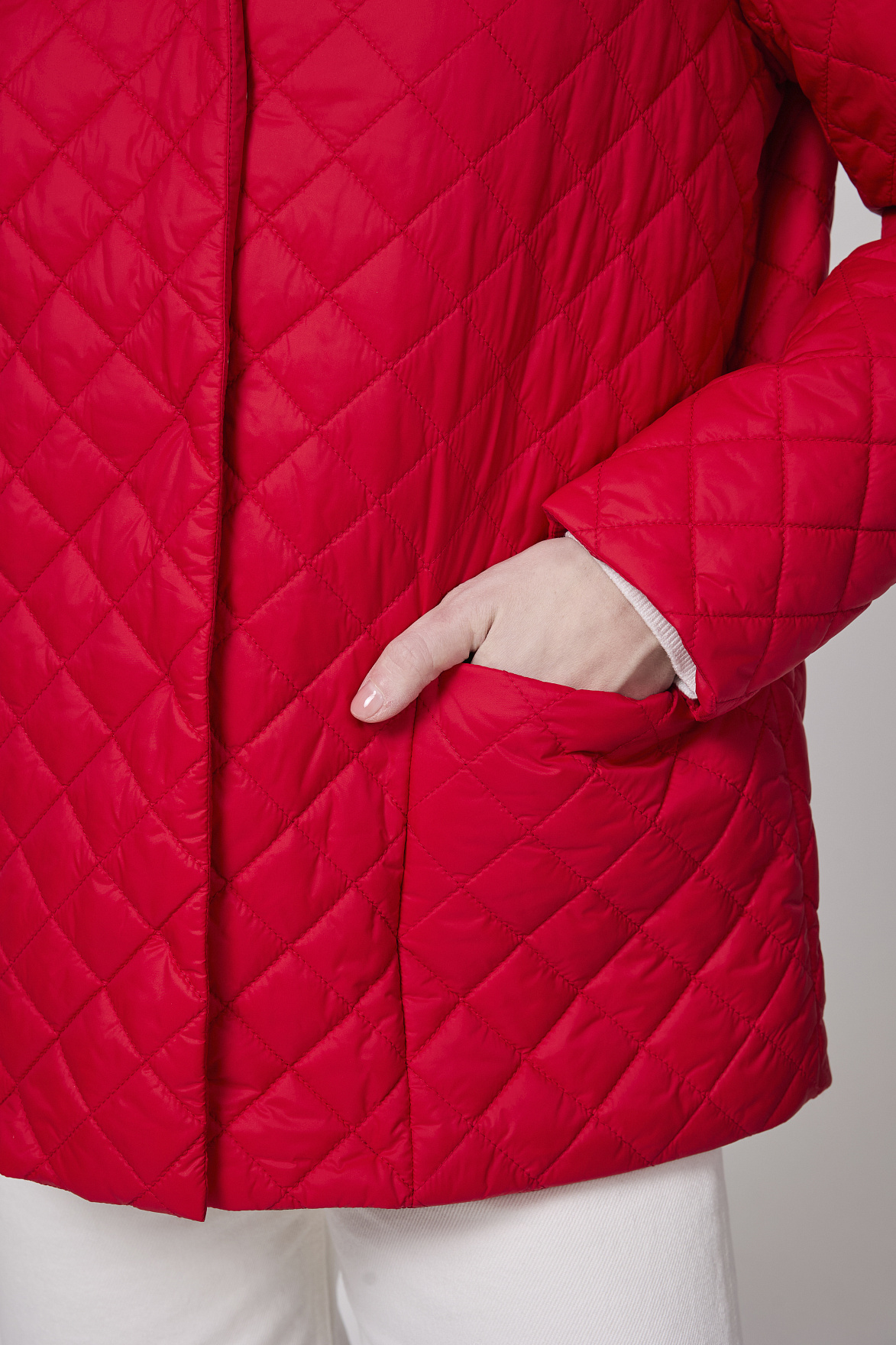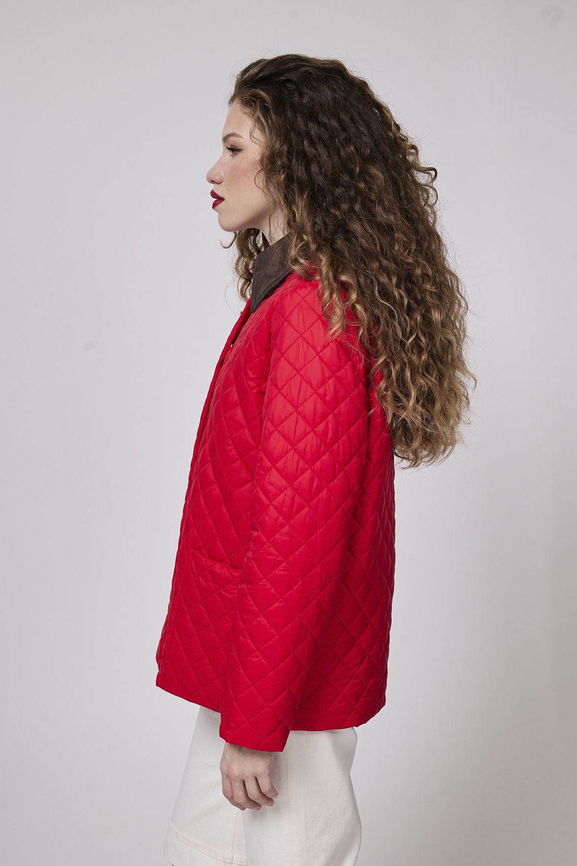Такую куртку мы советуем носить с прямыми брюками, тонким трикотажем и лоферами — в этом сочетании она особенно хорошо заменяет жакет. С денимом, ботильонами и мягким шарфом образ становится свободнее, но всё равно остаётся собранным. Если нужен акцентный городской комплект, оставьте рядом простые формы и спокойные материалы. Красный здесь уже делает достаточно, и куртка сама держит внимание без дополнительного усилия.