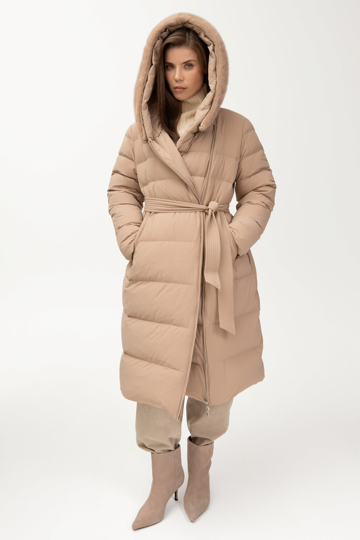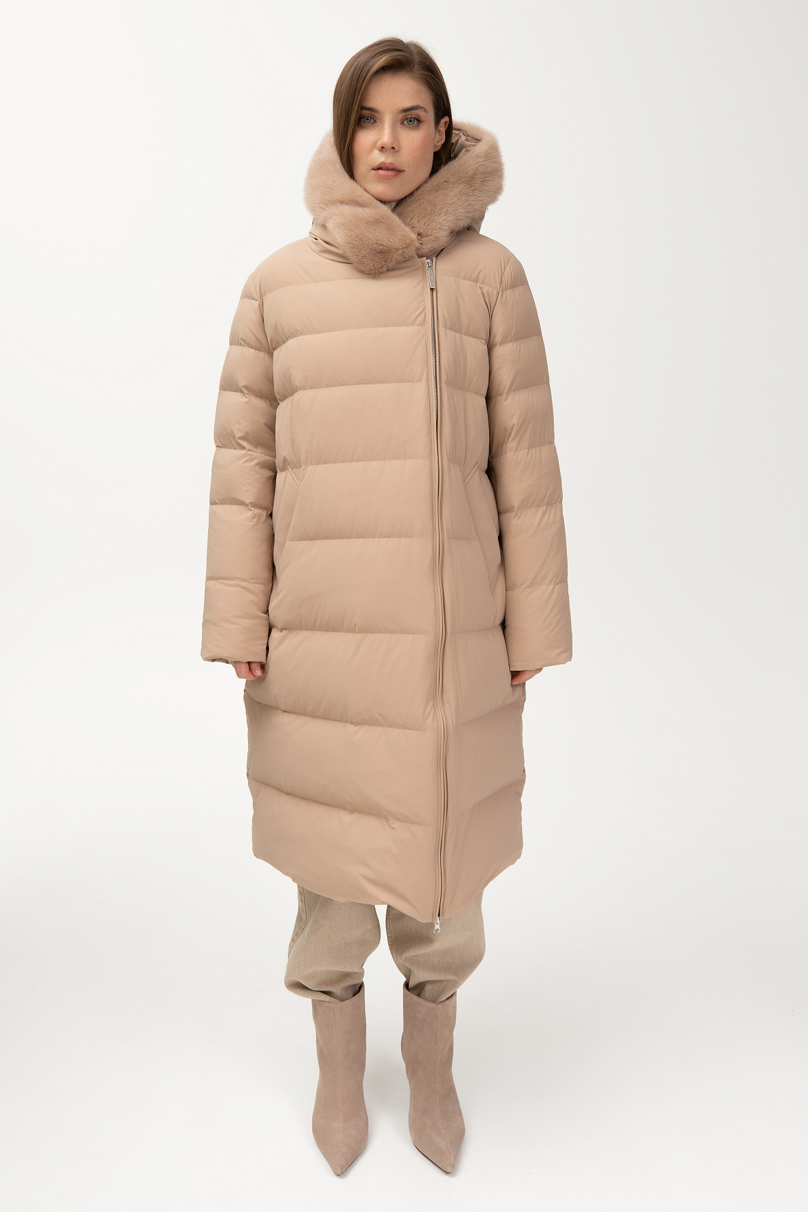 578.FWAA.017S пальто женское с мехом норка MOKKO